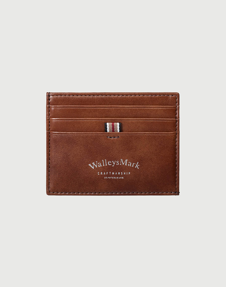 Картхолдер сочетает в себе строгий стиль, практичность и компактность. Картхолдер выполнен из итальянской натуральной кожи в цвете виски, украшен тисненым логотипом и фирменной тесьмой, имеет 6 отделений для банковских карт и универсальное отделение для купюр.
