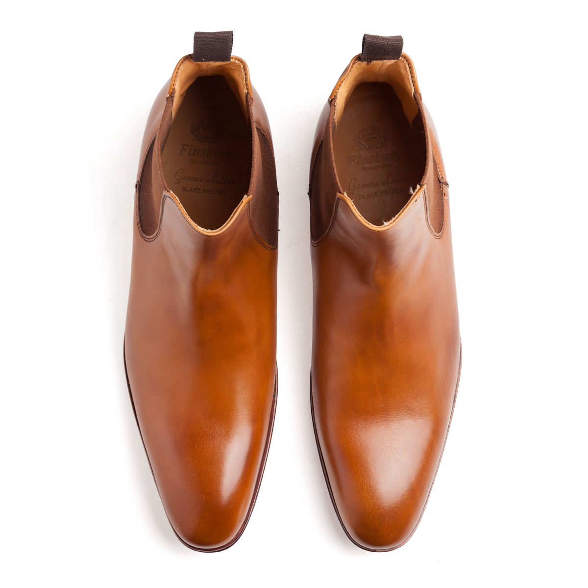 Finsbury Chester Tan — это ботинки челси, которые изготовлены из окрашенной вручную кожи рыжевато-коричневых тонов. Такая обувь выделяется универсальностью: она удачно сочетается со многими костюмами и непарными брюками, а также джинсами. Главное — избегать очень тёмных брюк и костюмов, особенно тёмно-серых и чёрных.