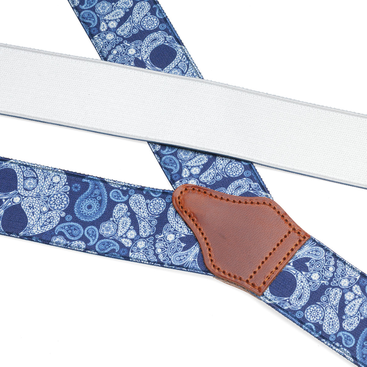 Кожаные наконечники с петлями позволяют прикрепить подтяжки к специальным пуговицам, которые можно пришить к брюкам (на некоторых брюках они уже присутствуют). При желании вы можете прикрепить подтяжки к брюкам и с помощью металлических зажимов, но имейте в виду, что консерваторы такой вариант не одобрят. Если захотите, зажимы или кожаные петли можно будет убрать. Наконечники Albert Thurston Blue Skulls созданы из кожи светло-коричневого цвета. Обувь под эти подтяжки может быть как строгой (подойдут любые оксфорды), так и неформальной (лоферы и монки тоже будут уместны). Мы рекомендуем выбрать костюм или непарные брюки и пиджак, а также однотонную рубашку.