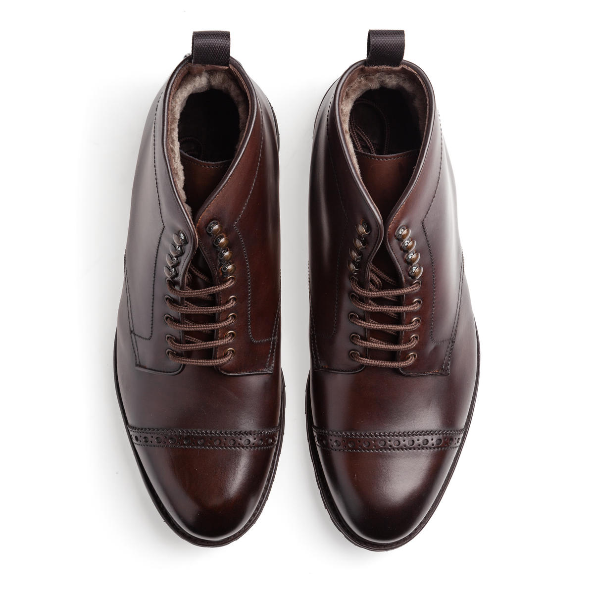 Berwick 482VM Nomera Testa — это стильные коричневые ботинки для мужчин, созданные из качественной гладкой кожи и оснащёнными высокими практичными подошвами из добротной резины. Подкладка у них меховая и стелька выполнена из меха.