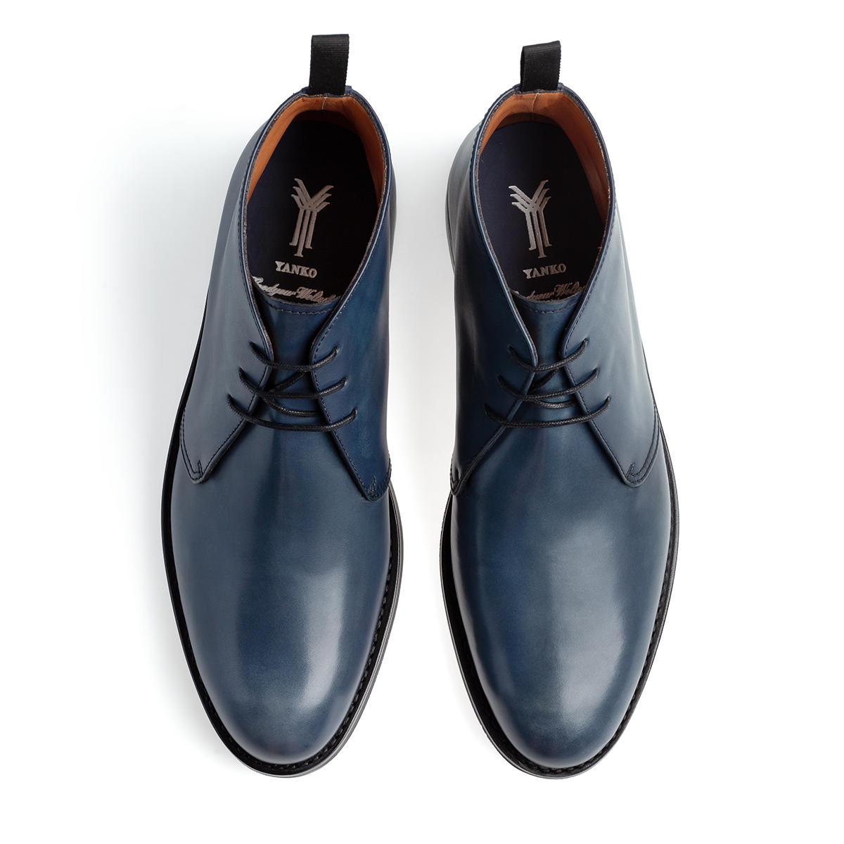 Yanko 14615 Yes Blue — это ботинки chukka насыщенного синего цвета, которые способны стать одним из самых необычных вещей в вашем гардеробе. Такие ботинки неформальны, но при этом весьма универсальны. Вы можете носить их с джинсами, чиносами, вельветовыми и твидовыми брюками. Прогулки по улицам и загородные поездки, неформальные встречи, посещения выставок, концертов и кафе — для всех подобных случаев ботинки Yanko 14615 Yes Blue хорошо подходят.