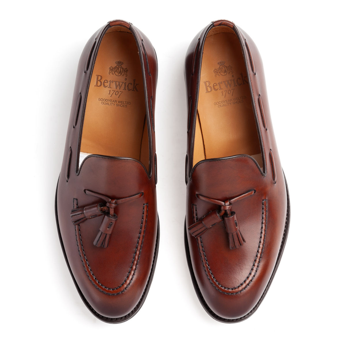 Berwick 4171 Nomera Medium Brown — это элегантные лоферы с кисточками, сшитые из гладкой телячьей кожи. Огромный потенциал сочетаемости — ключевое достоинство этой модели. Вы можете носить такие лоферы и с деловыми костюмами, и с джинсами, а также с чиносами, фланелевыми и льняными брюками.